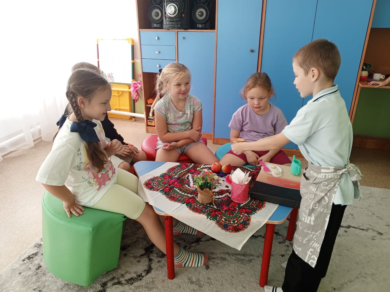Это позволило им почувствовать себя посетителями и сотрудниками кафе, научиться взаимодействовать в реальных ситуациях. Мы развивали их умение придумывать и развивать игровые сюжеты, а также расширяли знания о работе кафе.