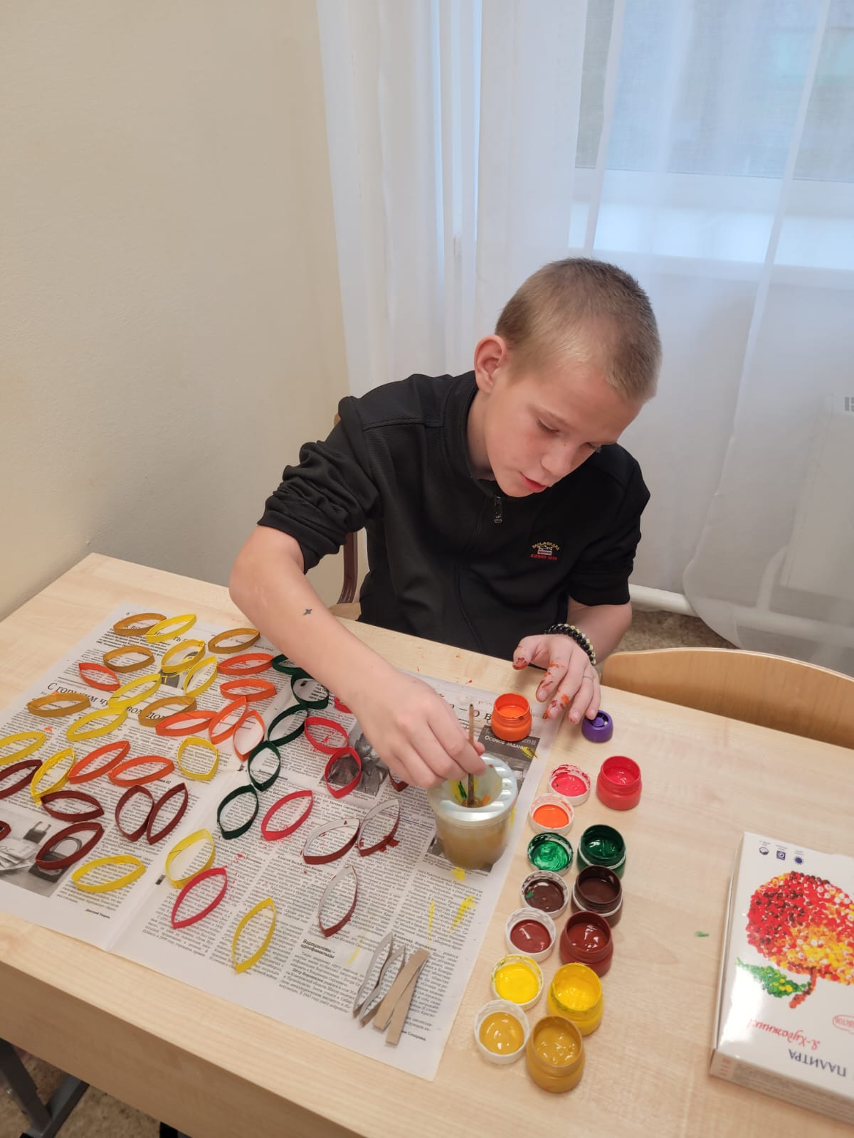 Воспитанники отделения социальной диагностики и реабилитации создавали осеннюю поделку. Под руководством педагогов они раскрасили заготовки листочков в желтые, оранжевые и красные цвета. Каждый старался сделать свою версию осени особенной.