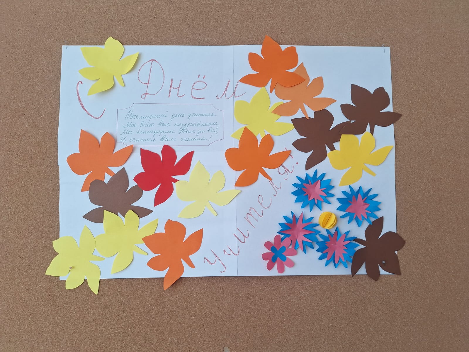 Дети сделали большую открытку с теплыми поздравлениями для своих наставников.