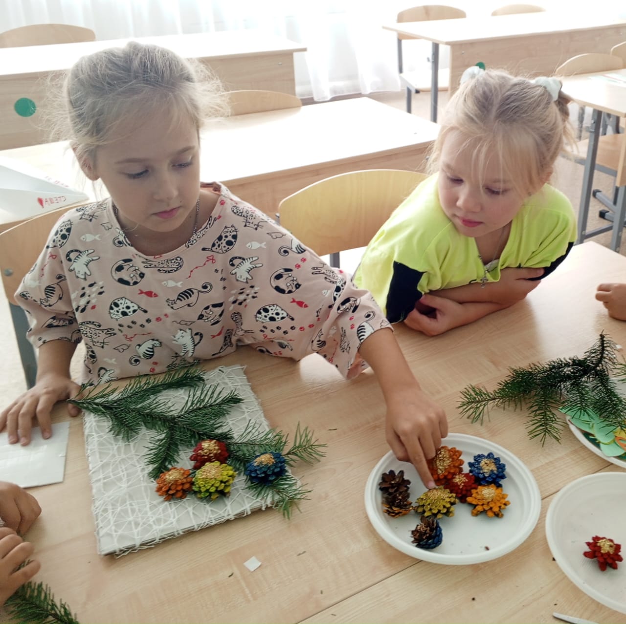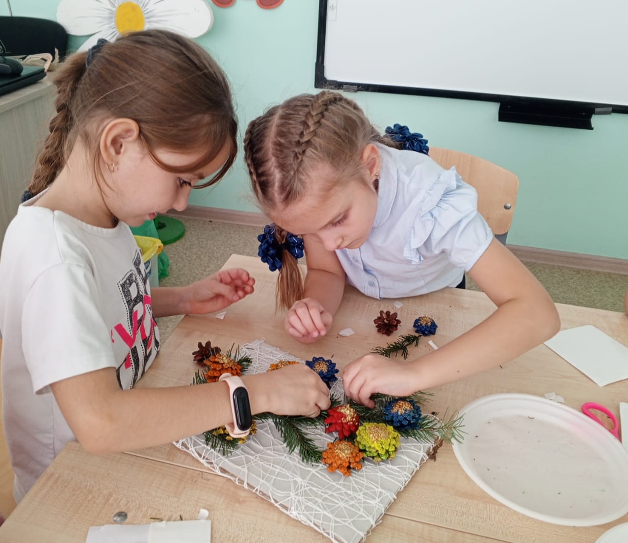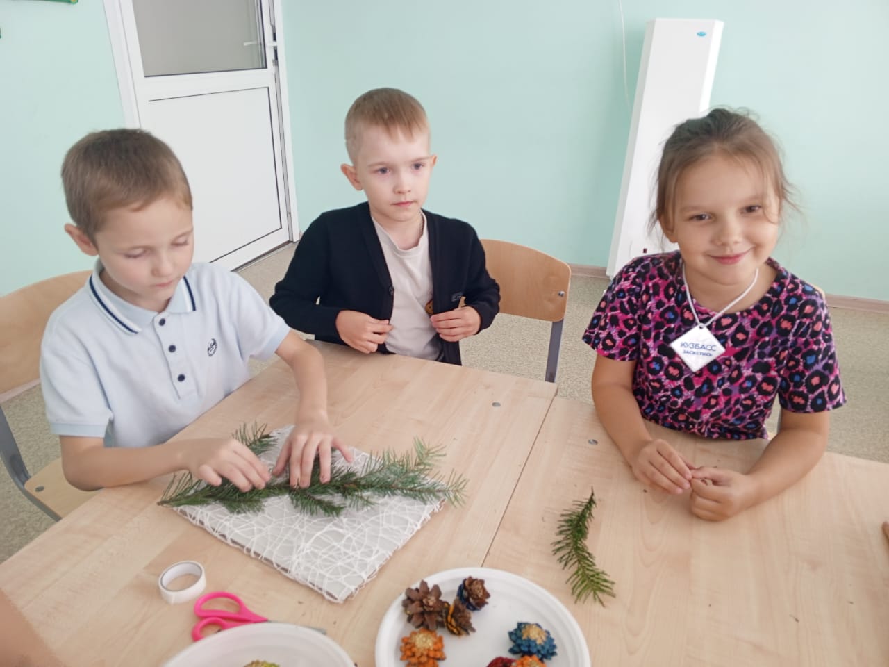 Ребята с интересом выбирали шишки разных размеров и создали уникальное произведение искусства.