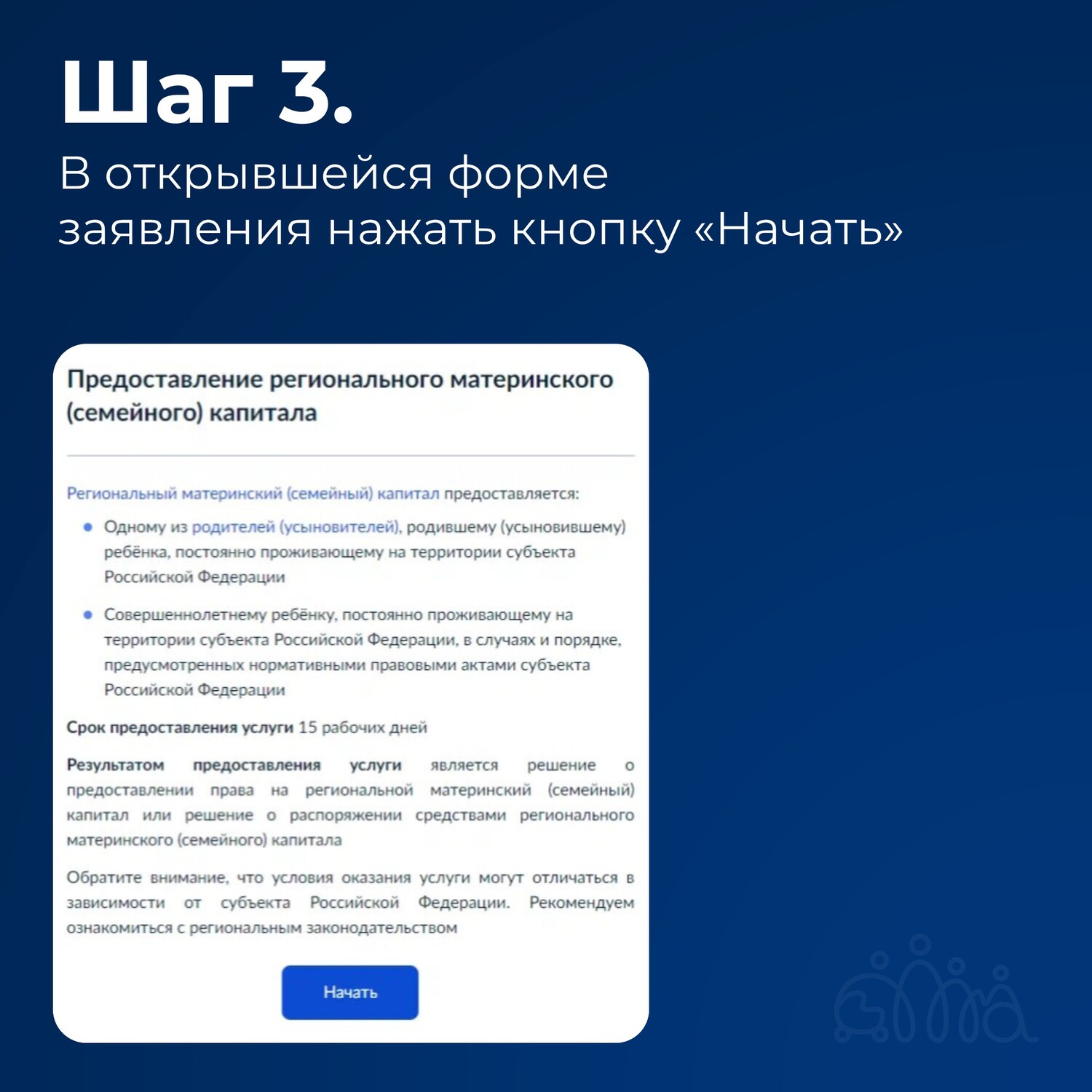Заявление на получение услуги «Предоставление регионального материнского (семейного) капитала» можно подать в электронном виде через портал «Госуслуги»: https://clck.ru/3AvUMP. 91% заявителей обращаются за услугой в электронном виде.