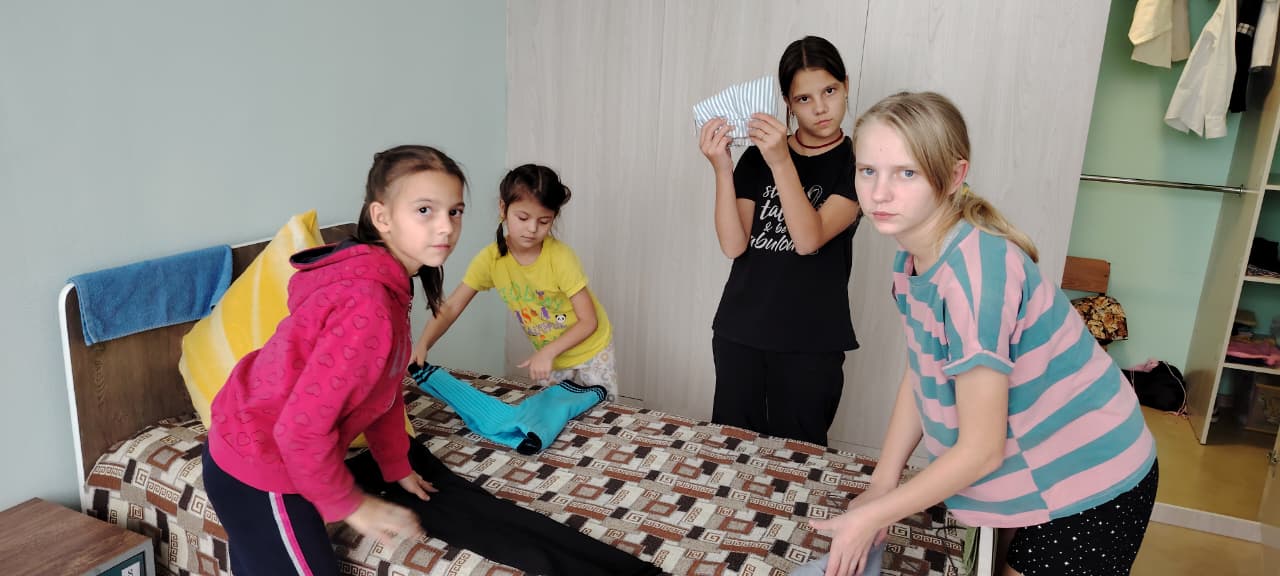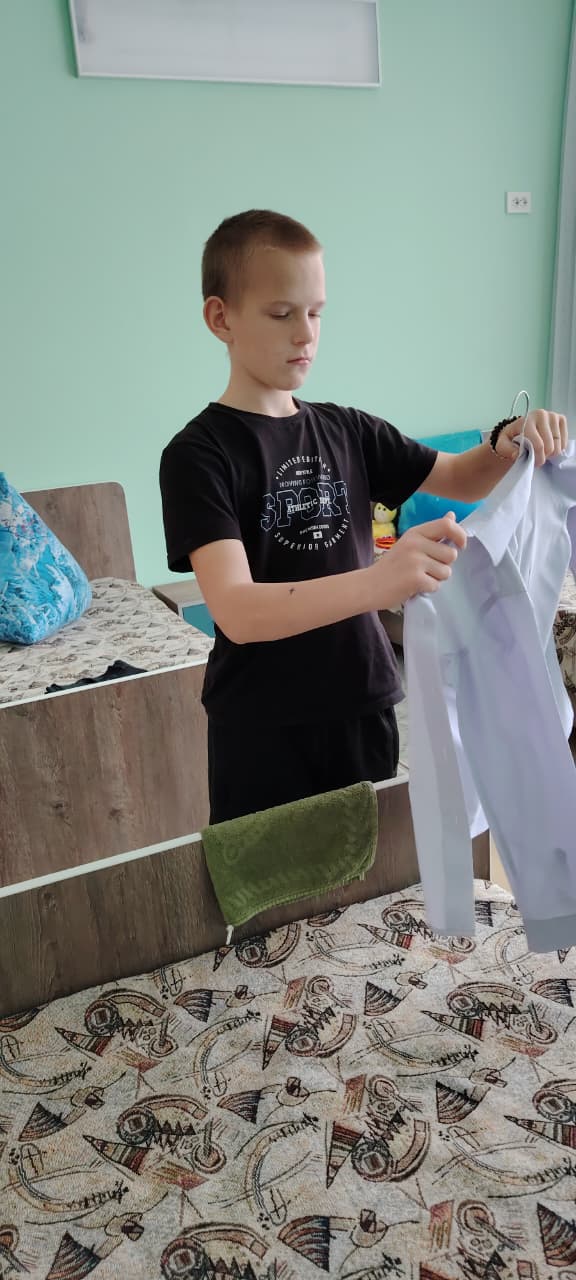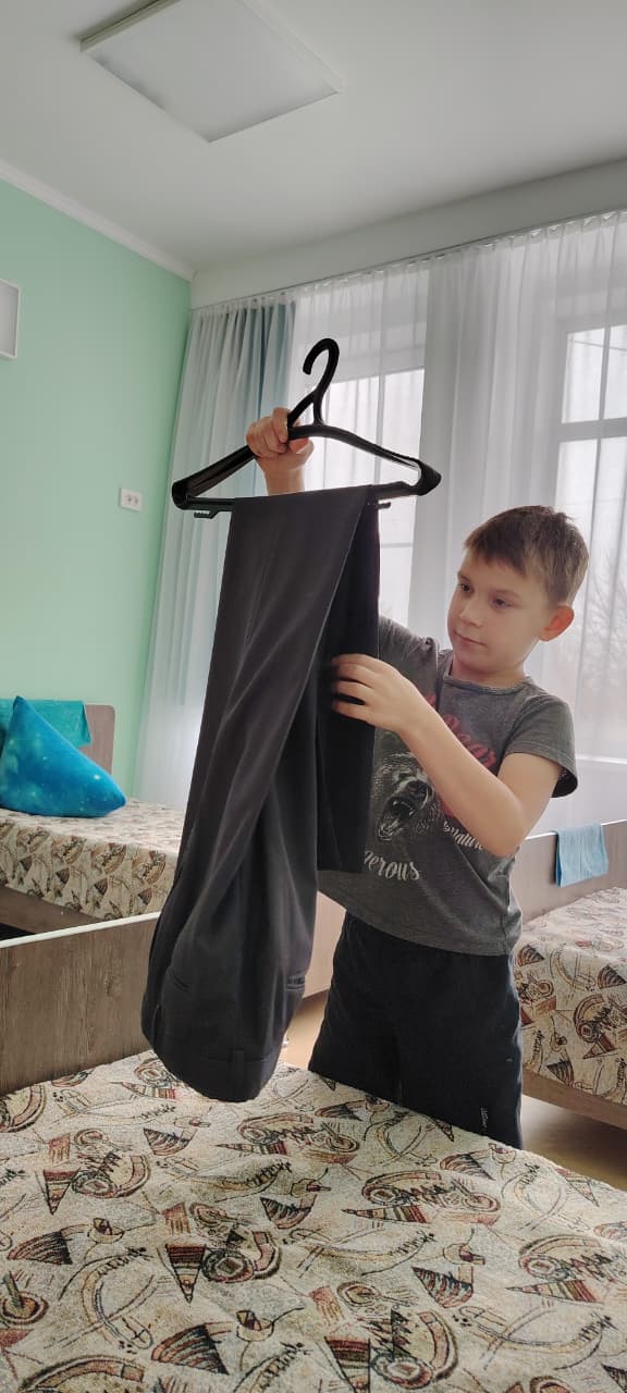 Воспитанники учились складывать одежду и развешивать ее на вешалки.