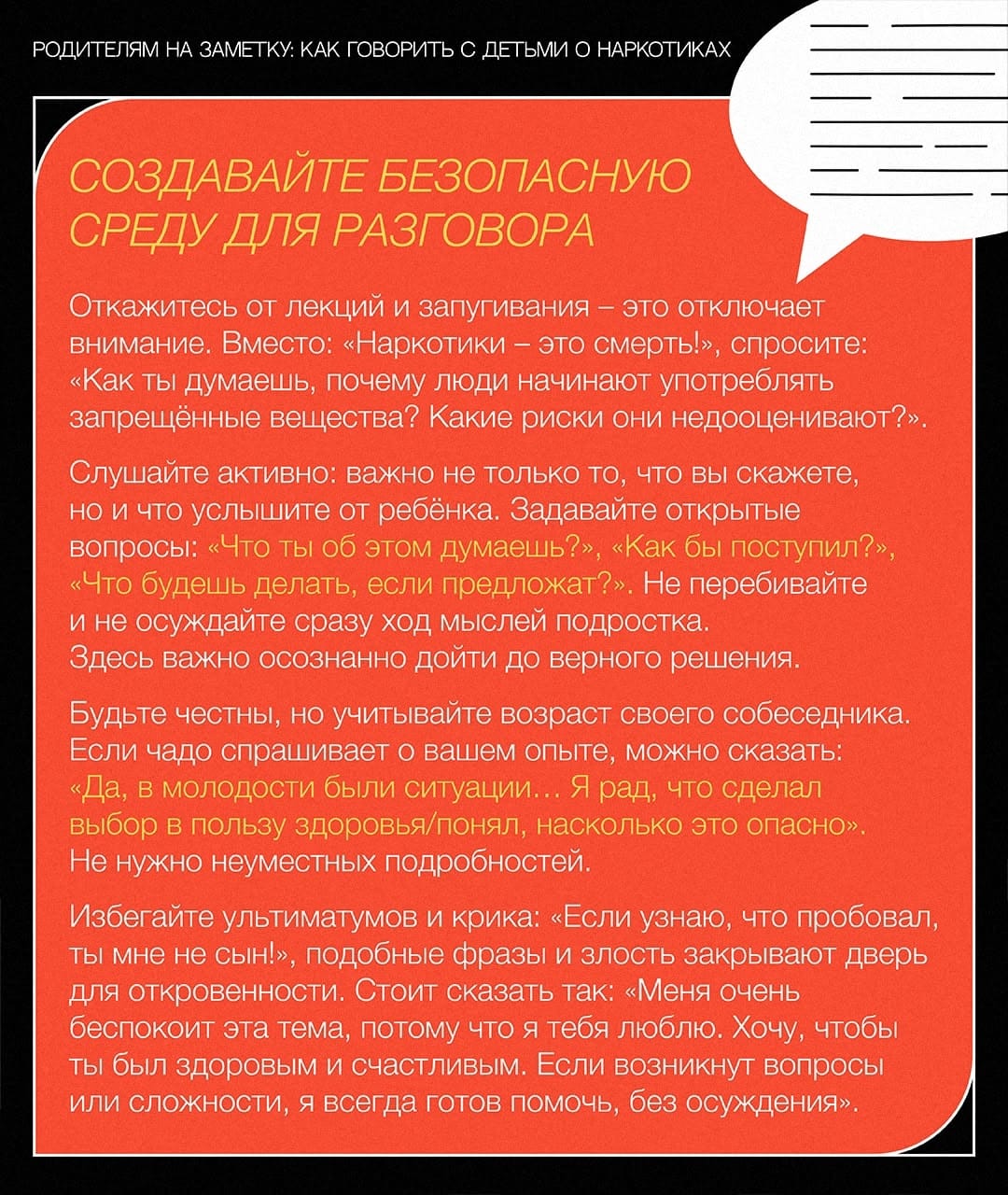 Важно помнить: один серьёзный разговор не решит проблему. Нужен постоянный диалог и атмосфера доверия.