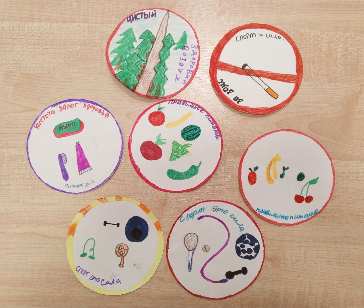 С детьми обсудили, как правильно питаться, ухаживать за своим телом и здоровьем, соблюдать гигиену. В завершение устроили конкурс эмблем, чтобы привлечь внимание и стимулировать творческий подход.