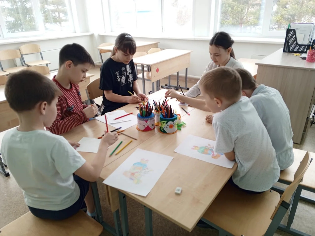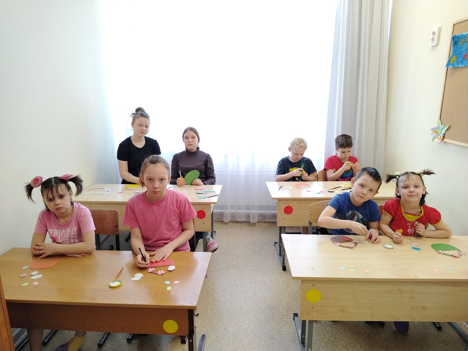 В результате получилась яркая и красочная выставка детского творчества!