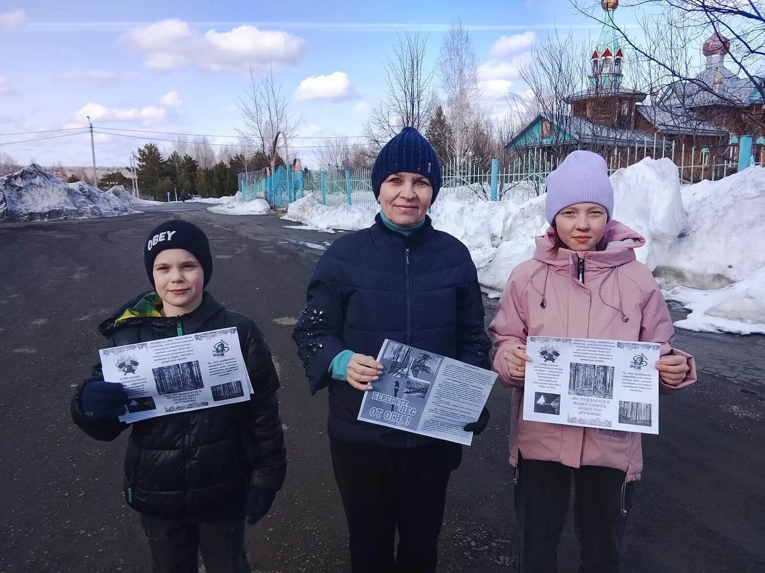 В рамках акции волонтёры раздали жителям посёлка листовки с советами по предотвращению лесных пожаров и охране природы.
